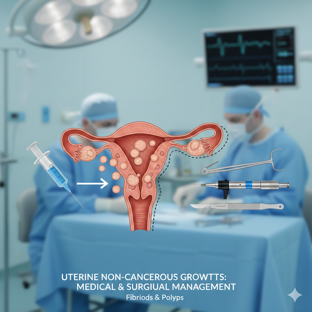 Non-cancerous growths of the uterus managed through medical and surgical care.