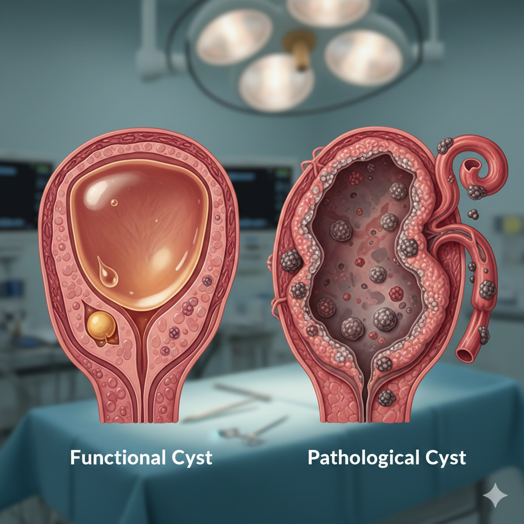 Functional and pathological cysts requiring monitoring or surgical treatment.